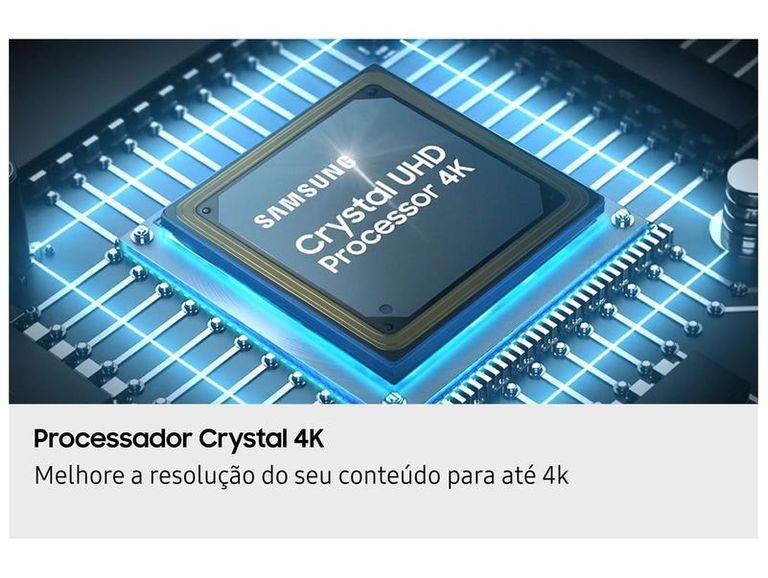 Qualidade de Imagem: Painel Crystal UHD 4K com resolução de 3840×2160, processador Crystal 4K e taxa de atualização de 60Hz